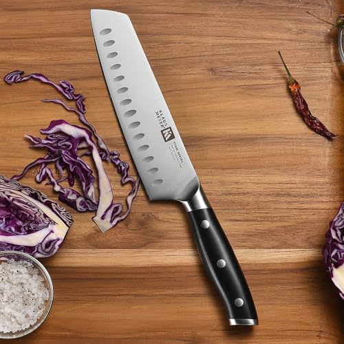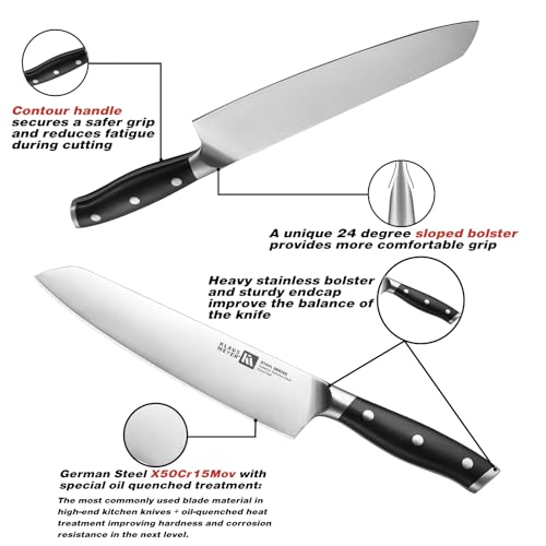 Crafted from X50CrMov15 high-carbon stainless steel, these knives offer remarkable durability and long-lasting sharpness. The blades are engineered with a hardness rating of 54-56 HRC, providing resistance to corrosion and ensuring robust performance in every cut. This makes them a reliable choice for both amateur cooks and seasoned chefs alike.